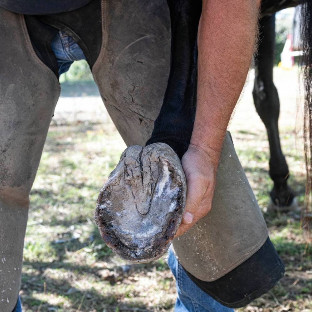 Keep track of your horse’s hoof growth and schedule regular trims with your farrier. Horses that are not trimmed regularly may experience hoof overgrowth, leading to discomfort or lameness. Maintaining